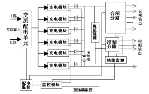 直流屏由高頻開(kāi)關(guān)整流模塊,可編程控制器(PLC,蓄電池組,絕緣監(jiān)視裝置,蓄電池自動(dòng)監(jiān)測(cè)裝置,母線電壓自動(dòng)調(diào)節(jié)裝置,觸摸屏,預(yù)告信號(hào)裝置等組成。蓄電池采用免維護(hù)電池。